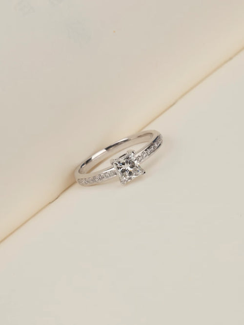 Lab Grown Square Diamond Ring in 18K Gold or PT950